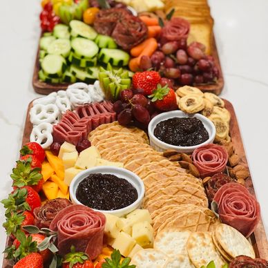 A vibrant selection of cheeses, meats, tropical fruits, and accompaniments, thoughtfully crafted to elevate any gathering.
