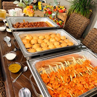 A joyful bridal shower featuring a beautifully arranged buffet of handcrafted appetizers and desserts. Caribe Azul takes care of every culinary detail, bringing vibrant Latin Caribbean flavors and thoughtful presentation so you can relax and celebrate with your guests.